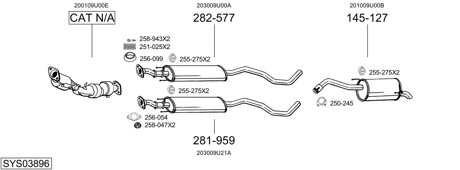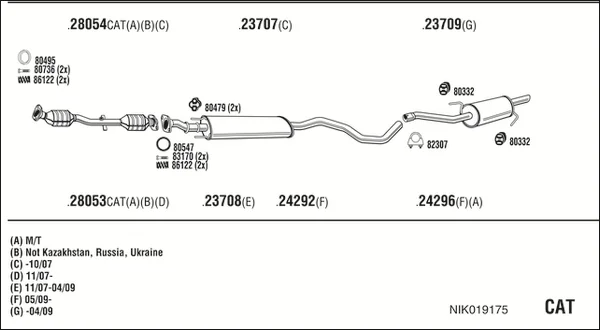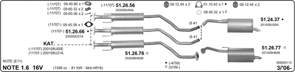 NISSAN NOTE (E11, NE11) 1.6 - Výfukový systém - kompletní od 3/2006 do 6/2012, 1598 ccm, 81 kW, 110 hp, HR16DE, velkoprostorová limuzína