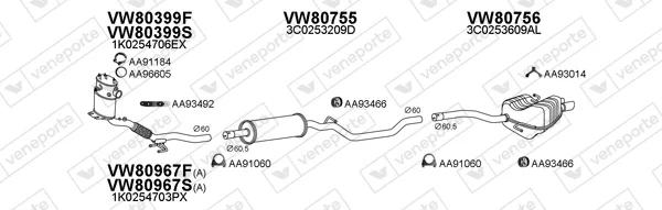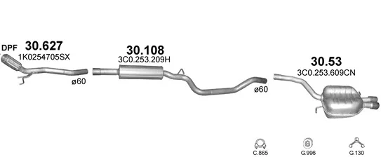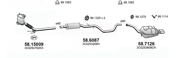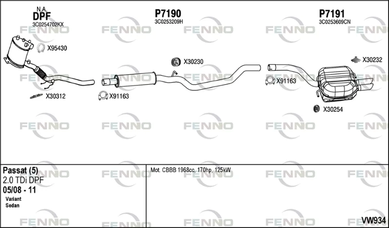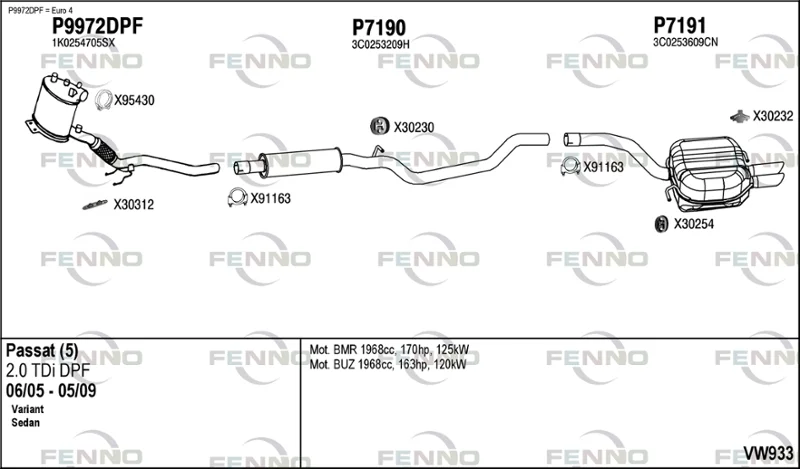 VW PASSAT B6 Variant (3C5) 2.0 TDI - Výfukový systém - kompletní od 8/2005 do 11/2010, 1968 ccm, 125 kW, 170 hp, BMR, CBBB, kombi