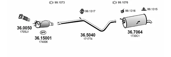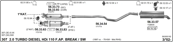 PEUGEOT 307 Break (3E) 2.0 HDI 110 - Výfukový systém - kompletní od 3/2002 do 12/2009, 1997 ccm, 79 kW, 107 hp, RHS (DW10ATED), kombi