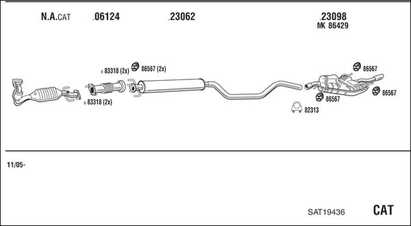 SAAB 9-5 kombi (YS3E) 2.3 Turbo - Výfukový systém - kompletní od 1/2006 do 12/2009, 2290 ccm, 191 kW, 260 hp, B235R, kombi