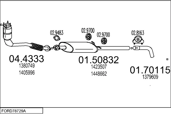 FORD TRANSIT valník/podvozek (FM_ _, FN_ _, FF_ _) 2.4 TDCi RWD - Výfukový systém - kompletní od 4/2006 do 8/2014, 2402 ccm, 103 kW, 140 hp, H9FB, H9FD, valník/podvozek