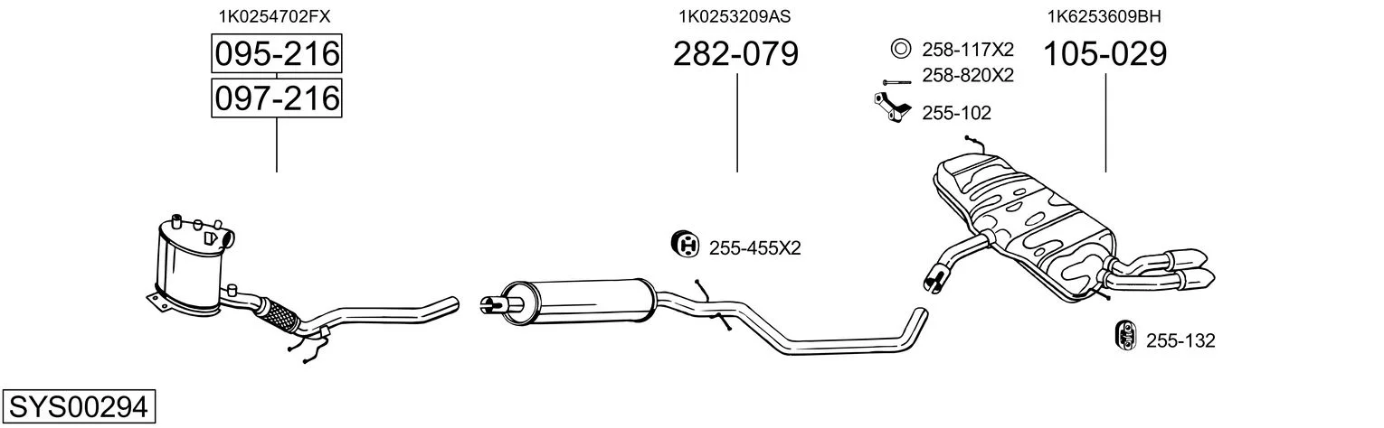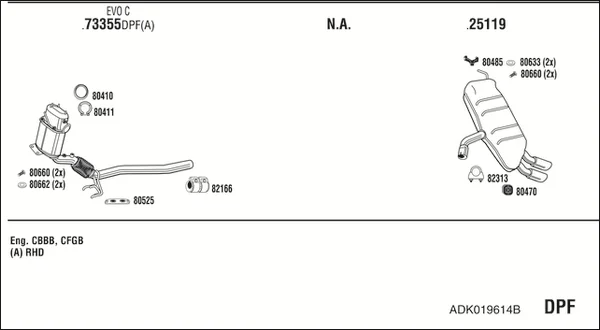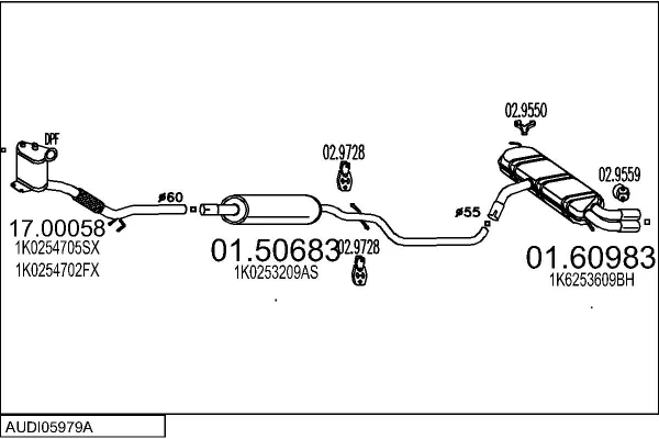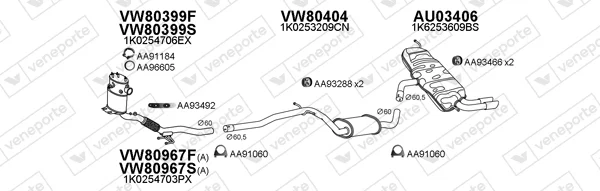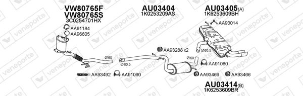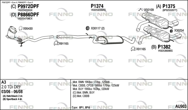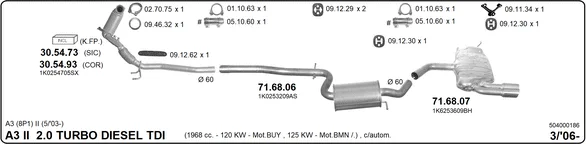 AUDI A3 (8P1) 2.0 TDI - Výfukový systém - kompletní od 3/2006 do 8/2012, 1968 ccm, 125 kW, 170 hp, BMN, CBBB, CFGB, Šikmá zadní část