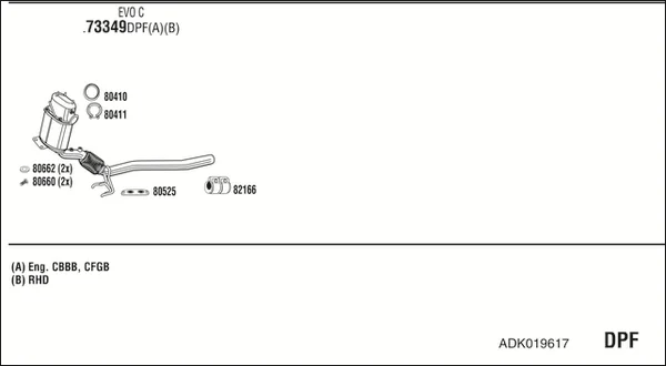 AUDI A3 Sportback (8PA) 2.0 TDI quattro - Výfukový systém - kompletní od 3/2006 do 3/2013, 1968 ccm, 125 kW, 170 hp, BMN, CBBB, CFGB, Šikmá zadní část