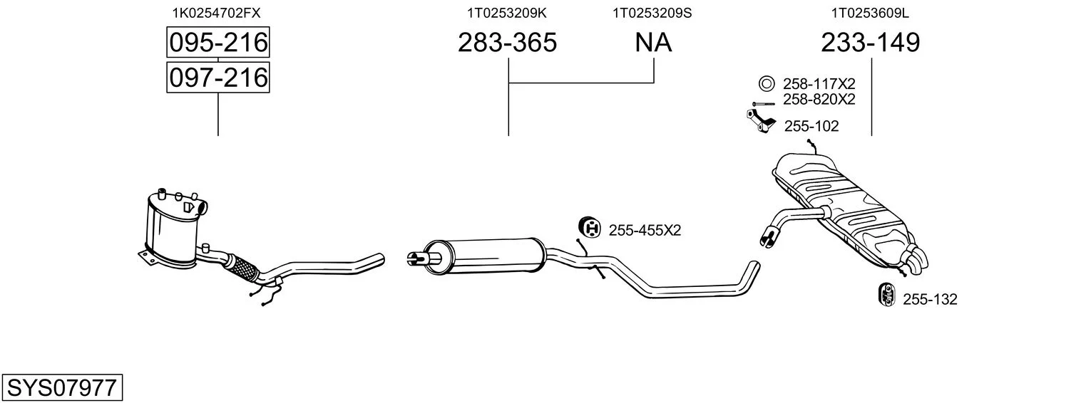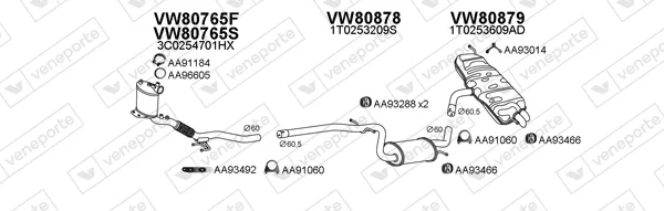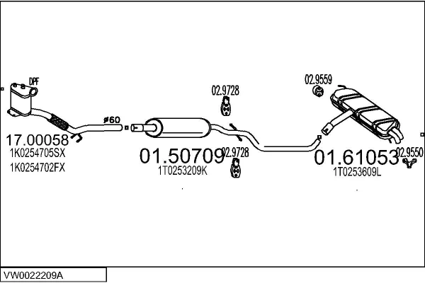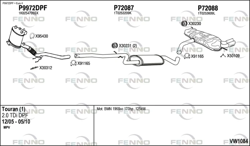 VW TOURAN (1T1, 1T2) 2.0 TDI - Výfukový systém - kompletní od 12/2005 do 5/2010, 1968 ccm, 125 kW, 170 hp, BMN, CFJA, velkoprostorová limuzína