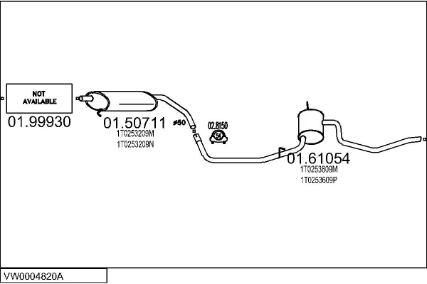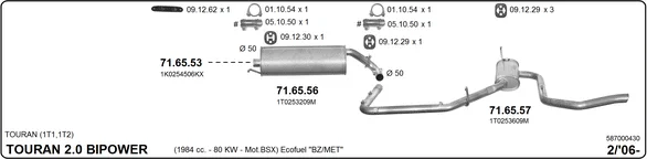 VW TOURAN (1T1, 1T2) 2.0 EcoFuel - Výfukový systém - kompletní od 2/2006 do 5/2009, 1984 ccm, 80 kW, 109 hp, BSX, velkoprostorová limuzína