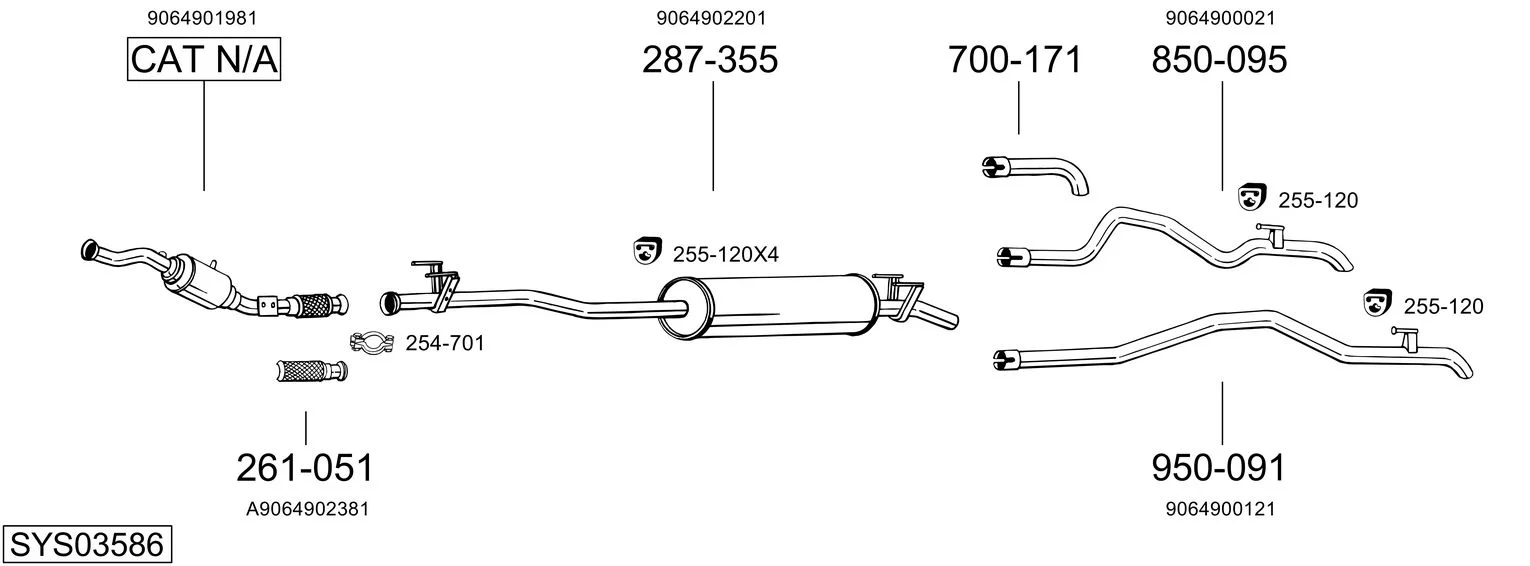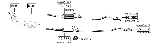 MERCEDES-BENZ SPRINTER 3-t valník/podvozek (B906) 209 CDI (906.111, 906.113, 906.211, 906.213) - Výfukový systém - kompletní od 6/2006 do 12/2009, 2148 ccm, 65 kW, 88 hp, OM 646.984, valník/podvozek