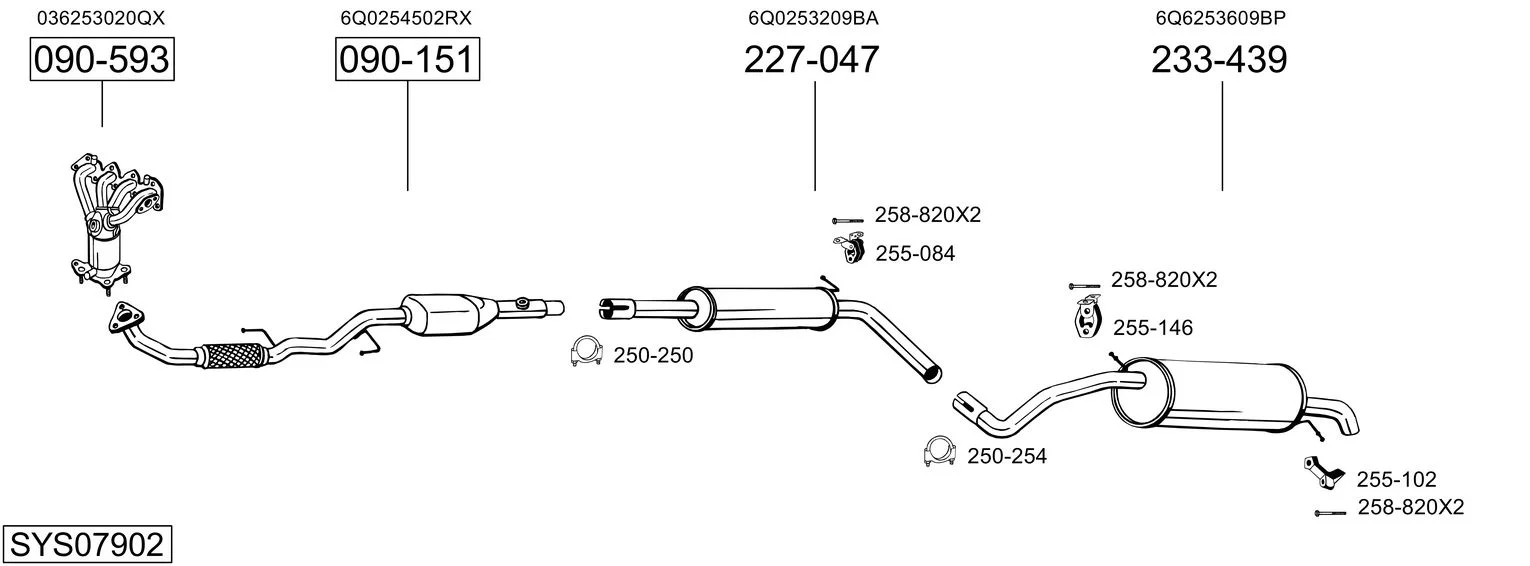 VW POLO IV (9N_, 9A_) 1.6 16V - Výfukový systém - kompletní od 5/2006 do 11/2009, 1598 ccm, 77 kW, 105 hp, BTS, Šikmá zadní část