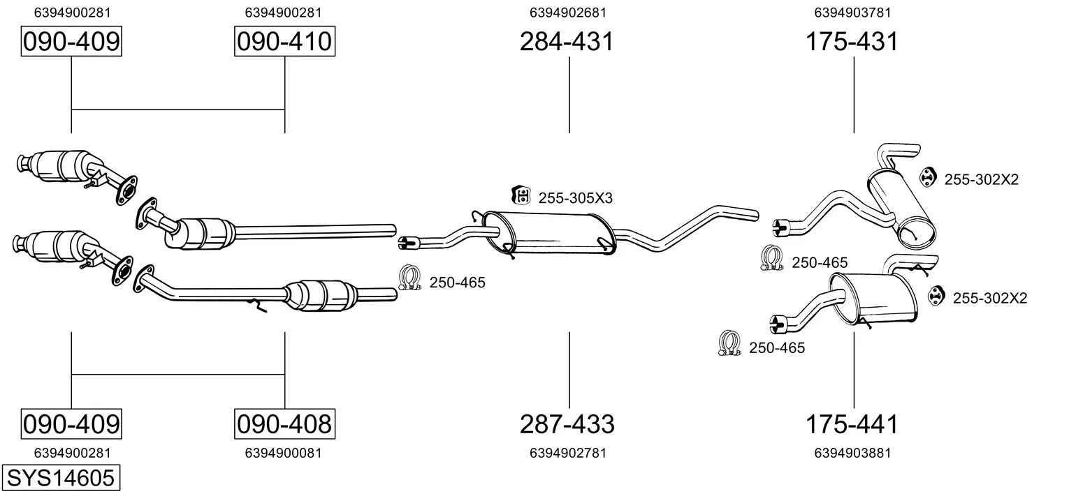 MERCEDES-BENZ VIANO (W639) CDI 2.2 4-matic (639.711, 639.713, 639.811, 639.813,... - Výfukový systém - kompletní od 7/2005, 2148 ccm, 110 kW, 150 hp, OM 646.982, autobus