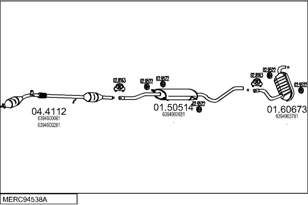 MERCEDES-BENZ VIANO (W639) CDI 2.2 4-matic (639.711, 639.713, 639.811, 639.813,... - Výfukový systém - kompletní od 7/2005, 2148 ccm, 110 kW, 150 hp, OM 646.982, autobus