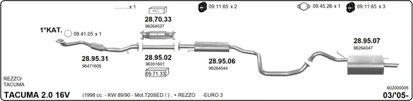 CHEVROLET TACUMA velkoprostorová limuzína (U100) 2.0 - Výfukový systém - kompletní od 8/2005 do 9/2009, 1998 ccm, 90 kW, 122 hp, L88, velkoprostorová limuzína