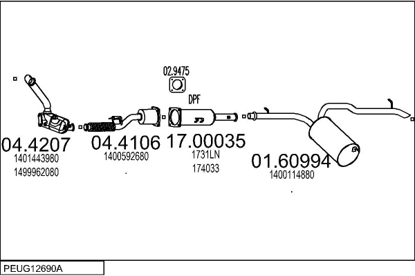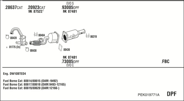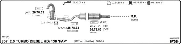PEUGEOT 807 (EB_) 2.0 HDI - Výfukový systém - kompletní od 6/2006, 1997 ccm, 100 kW, 136 hp, RHD (DW10CTED4), RHR (DW10BTED4), RHR (DW10CB), velkoprostorová limuzína