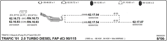RENAULT TRAFIC II valník/podvozek (EL) 2.0 dCi 115 (EL0H, EL00, EL01, EL0M) - Výfukový systém - kompletní od 8/2006, 1995 ccm, 84 kW, 114 hp, M9R 630, M9R 692, M9R 780, M9R 782, M9R 786, valník/podvozek