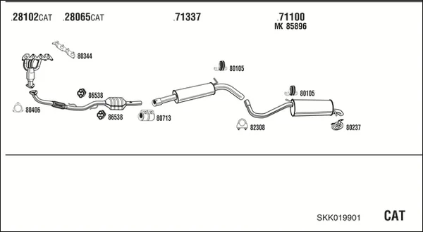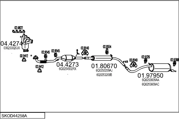 SKODA FABIA I limuzína (6Y3) 1.4 16V - Výfukový systém - kompletní od 4/2006 do 12/2007, 1390 ccm, 59 kW, 80 hp, BUD, limuzína