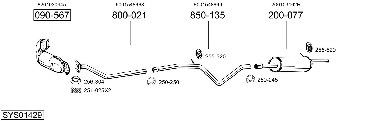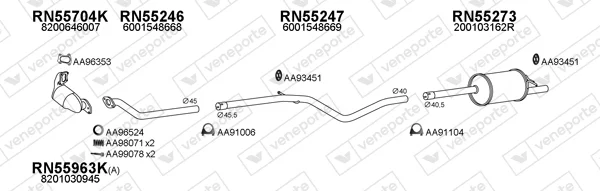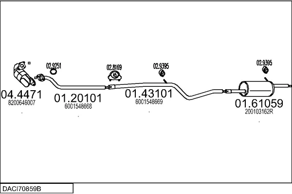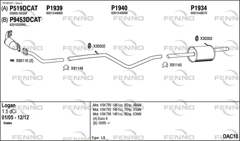 DACIA LOGAN (LS_) 1.5 dCi (LS0K) - Výfukový systém - kompletní od 1/2006 do 12/2012, 1461 ccm, 50 kW, 68 hp, K9K 792, limuzína