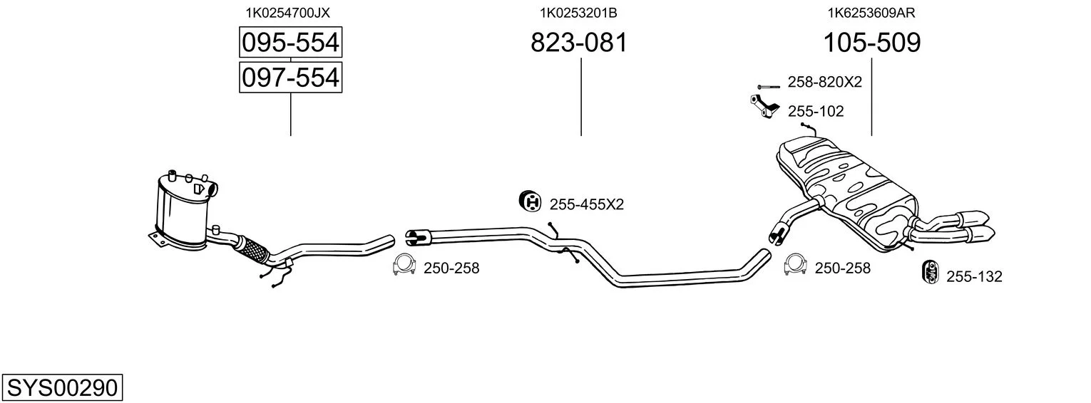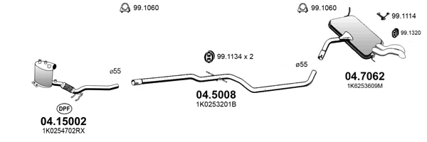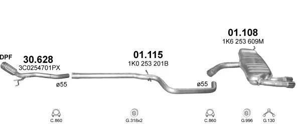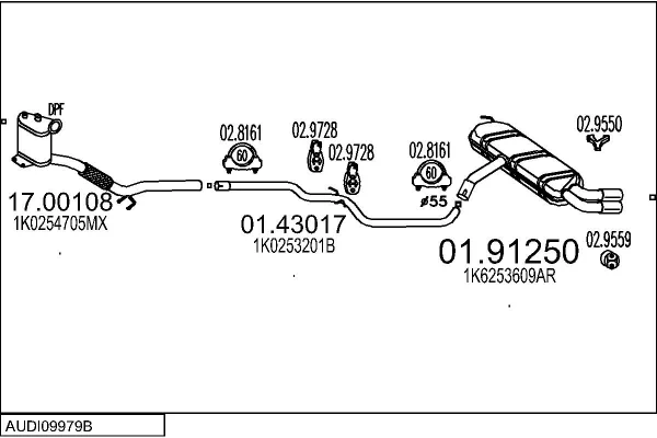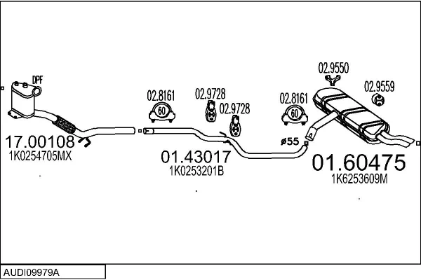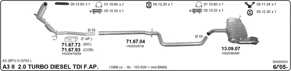 AUDI A3 (8P1) 2.0 TDI - Výfukový systém - kompletní od 6/2005 do 6/2008, 1968 ccm, 103 kW, 140 hp, BMM, Šikmá zadní část