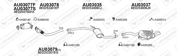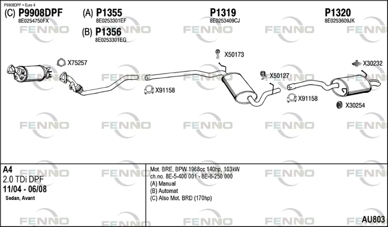 AUDI A4 B7 Avant (8ED) 2.0 TDI - Výfukový systém - kompletní od 11/2004 do 6/2008, 1968 ccm, 103 kW, 140 hp, BPW, kombi