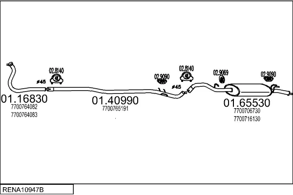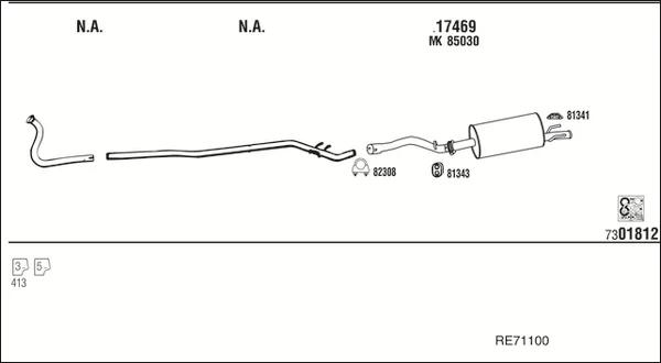 RENAULT 11 (B/C37_) 1.1 (B/C371) - Výfukový systém - kompletní od 3/1983 do 6/1986, 1108 ccm, 35 kW, 48 hp, C1E 715, C1E 720, Šikmá zadní část