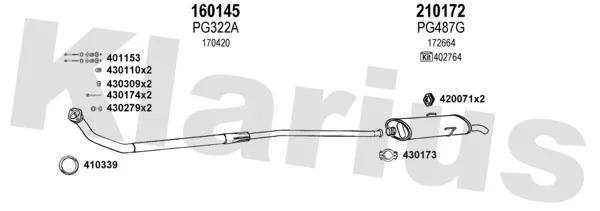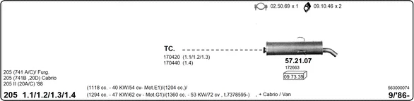 PEUGEOT 205 II (20A/C) 1.3 - Výfukový systém - kompletní od 8/1990 do 7/1992, 1294 ccm, 47 kW, 64 hp, G1A, Šikmá zadní část