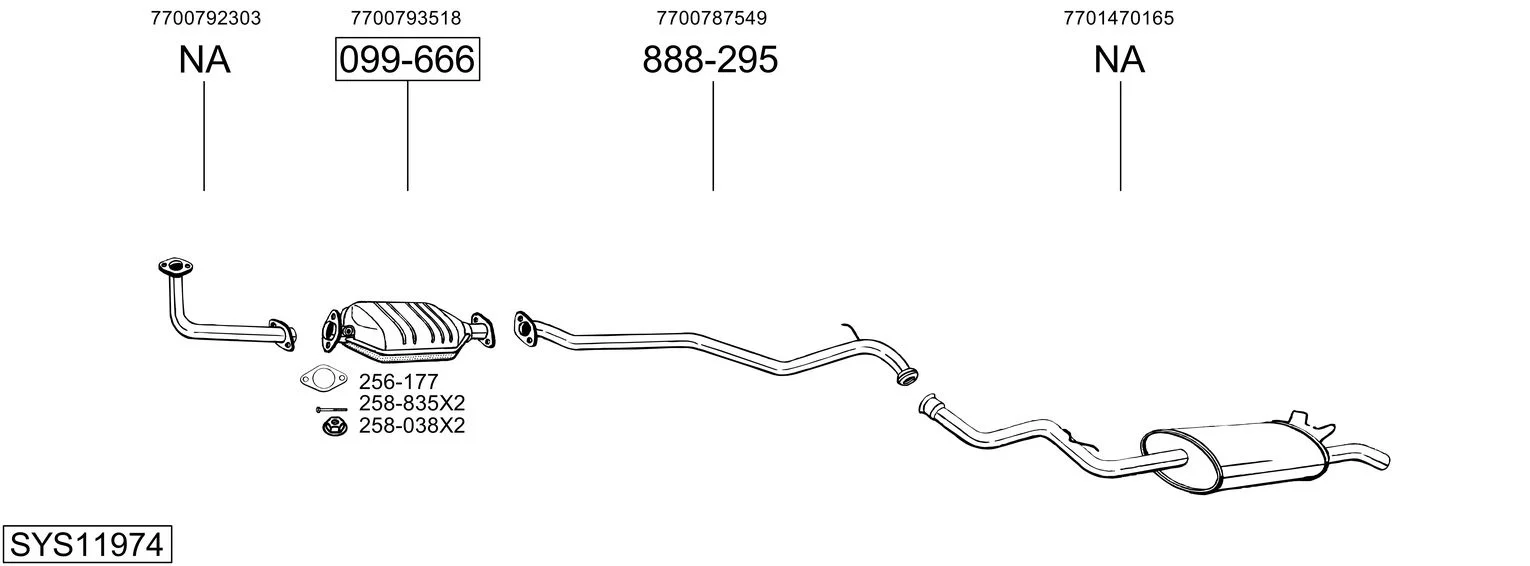 RENAULT 19 I (B/C53_) 1.4 Cat (B/C532) - Výfukový systém - kompletní od 1/1989 do 4/1992, 1390 ccm, 43 kW, 58 hp, C3J 710, Šikmá zadní část
