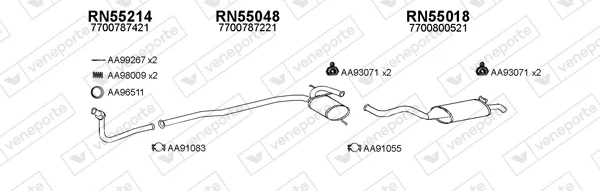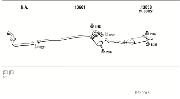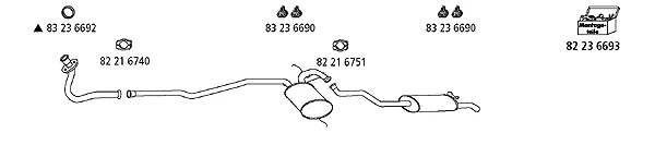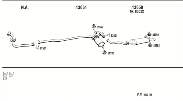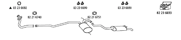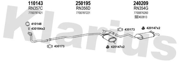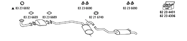 RENAULT 19 I (B/C53_) 1.9 D (B/C534, B/C53J) - Výfukový systém - kompletní od 9/1988 do 4/1992, 1870 ccm, 47 kW, 64 hp, F8Q 706, F8Q 742, Šikmá zadní část