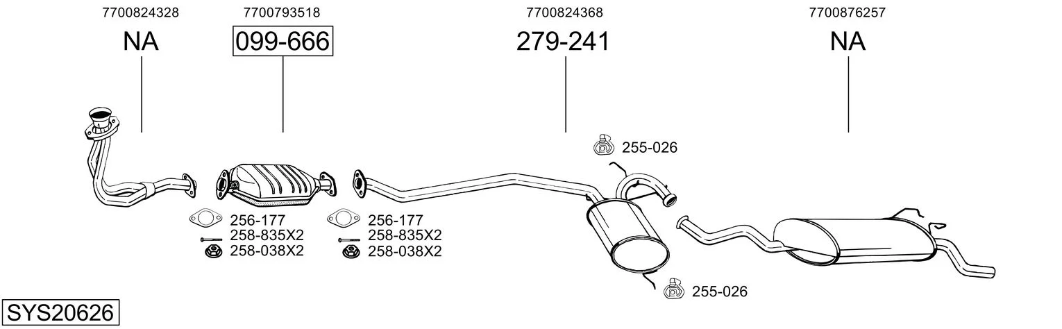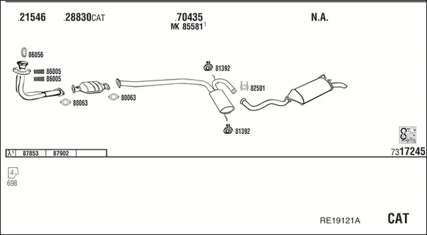 RENAULT 19 II Chamade (L53_) 1.8 (L53Y) - Výfukový systém - kompletní od 4/1992 do 12/1995, 1794 ccm, 65 kW, 88 hp, F3P 704, F3P 705, F3P 706, F3P 707, F3P 708, F3P 760, limuzína