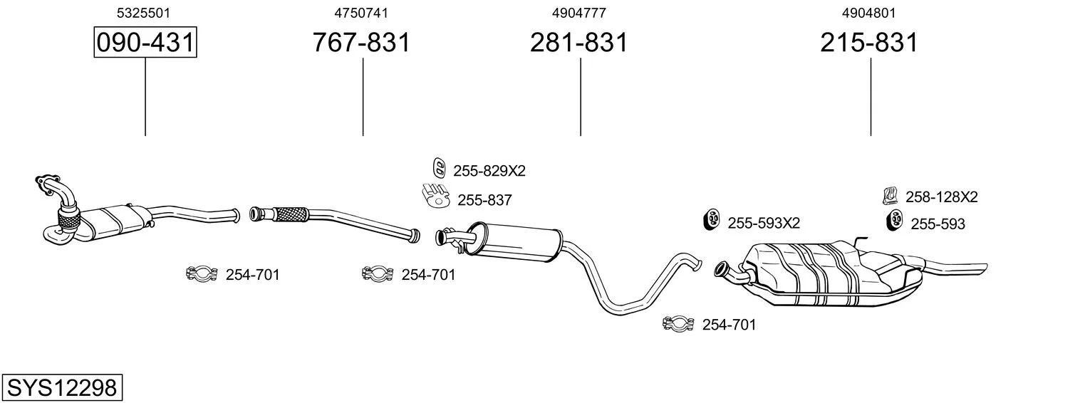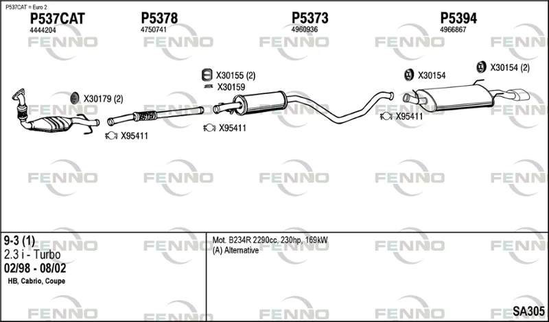 SAAB 9-3 (YS3D) 2.3 - Výfukový systém - kompletní od 9/1999 do 1/2002, 2290 ccm, 169 kW, 230 hp, B235R, Šikmá zadní část