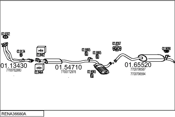 RENAULT 21 limuzína (L48_) 2.0 (L483) - Výfukový systém - kompletní od 3/1986 do 12/1988, 1995 ccm, 85 kW, 116 hp, J7R 750, J7R 751, limuzína