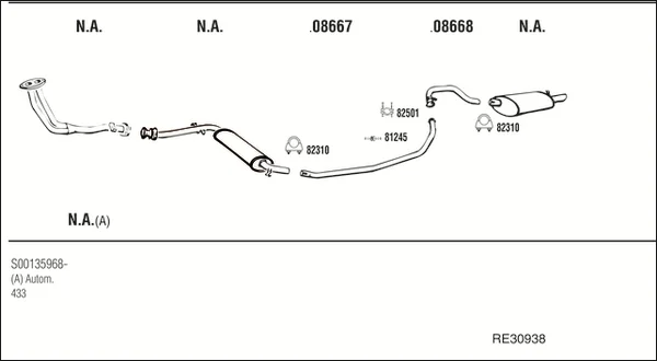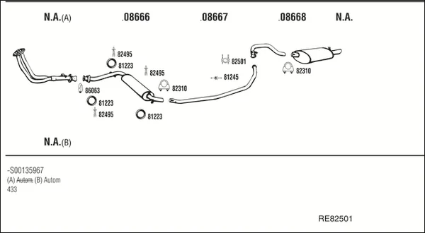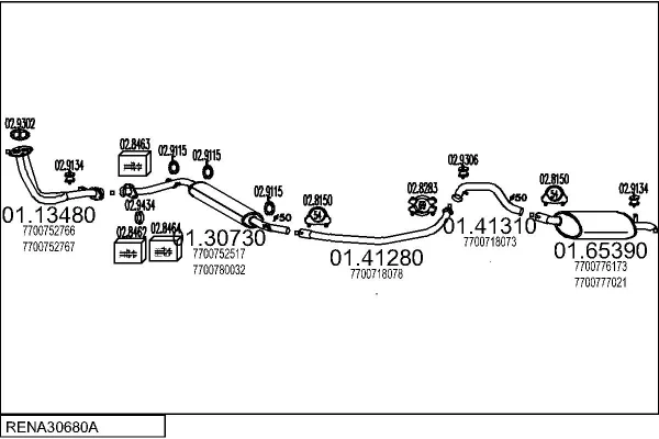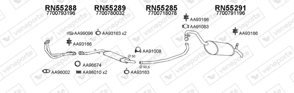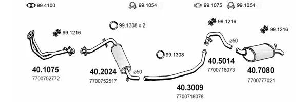 RENAULT 25 (B29_) 2.0 (B297) - Výfukový systém - kompletní od 4/1984 do 12/1992, 1995 ccm, 74 kW, 101 hp, J6R 706, J6R 707, J6R 760, J6R 762, J6R 763, Šikmá zadní část