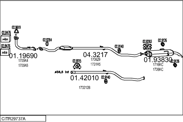 CITROËN SAXO (S0, S1) 1.1 BiFuel - Výfukový systém - kompletní od 7/2000 do 6/2003, 1124 ccm, 44 kW, 60 hp, HDZ (TU1M), Šikmá zadní část