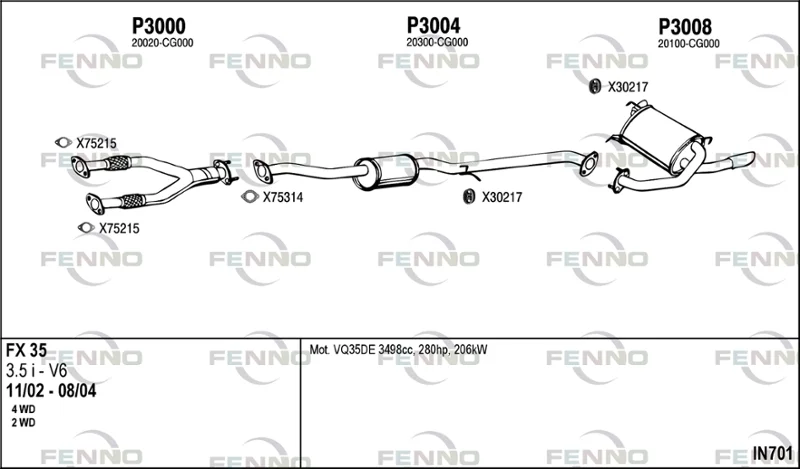 INFINITI FX 35 - Výfukový systém - kompletní od 2/2003 do 12/2008, 3498 ccm, 206 kW, 280 hp, VQ35DE, SUV