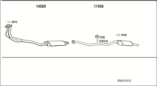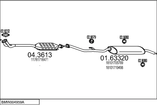 BMW 3 Touring (E30) 316 i - Výfukový systém - kompletní od 9/1991 do 6/1994, 1596 ccm, 73 kW, 100 hp, M40 B16 (164E1), kombi