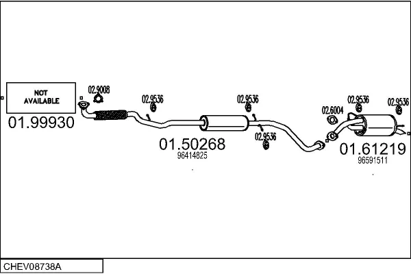 CHEVROLET SPARK 0.8 - Výfukový systém - kompletní od 5/2005 do 2/2010, 796 ccm, 37 kW, 50 hp, LBF(49CUL3), LQ2(49CUL3), Šikmá zadní část