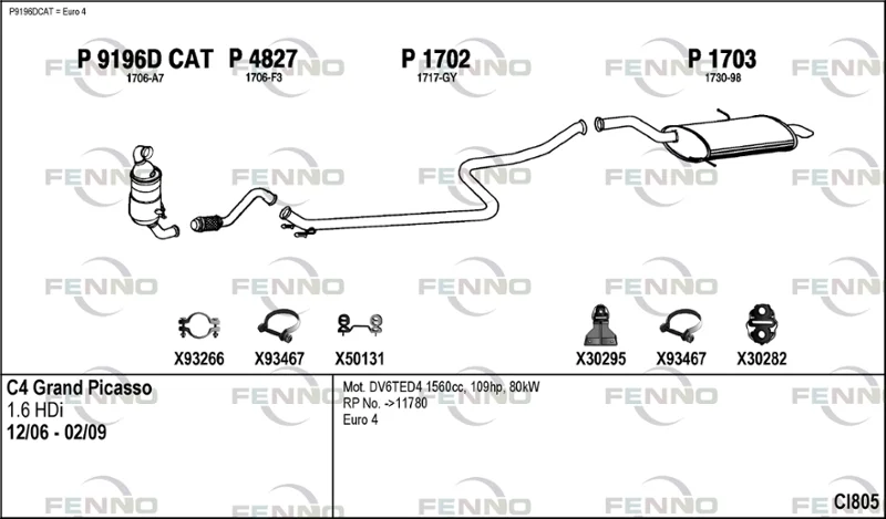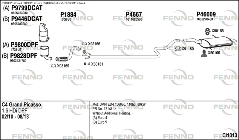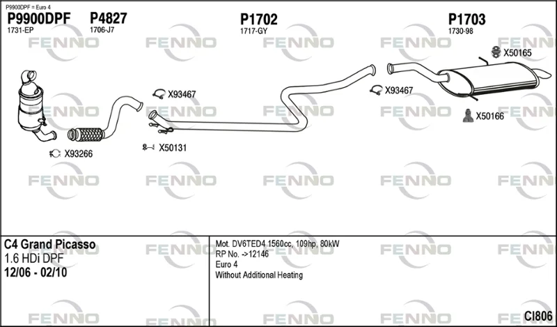 CITROËN C4 GRAND PICASSO I (UA_) 1.6 HDi - Výfukový systém - kompletní od 10/2006 do 6/2011, 1560 ccm, 80 kW, 109 hp, 9HY (DV6TED4), 9HZ (DV6TED4), velkoprostorová limuzína