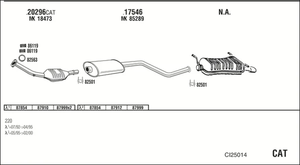 CITROËN ZX (N2) 2.0 i - Výfukový systém - kompletní od 7/1992 do 6/1997, 1998 ccm, 89 kW, 121 hp, RFX (XU10J2C), Šikmá zadní část