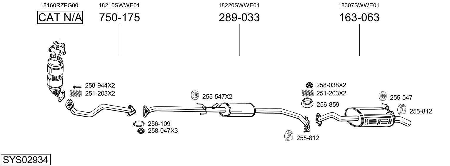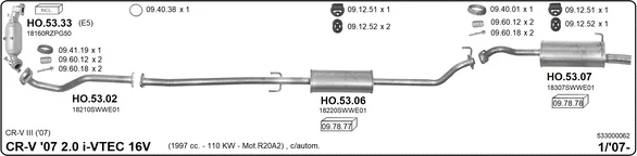 HONDA CR-V III (RE_) 2.0 i-VTEC 4WD (RE5, RE2) - Výfukový systém - kompletní od 10/2006 do 6/2012, 1997 ccm, 110 kW, 150 hp, R20A1, R20A2, SUV