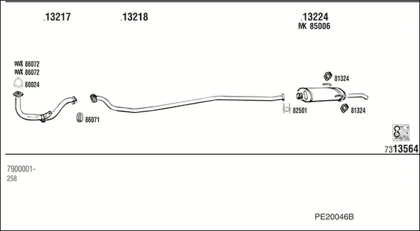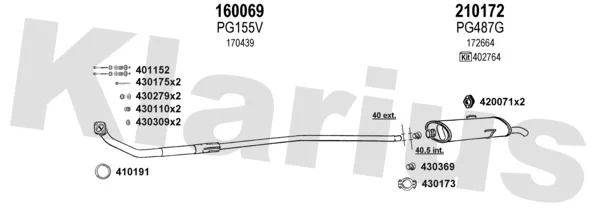 PEUGEOT 205 II (20A/C) 1.1 - Výfukový systém - kompletní od 10/1987 do 10/1990, 1124 ccm, 36 kW, 49 hp, 109N (XW7), Šikmá zadní část