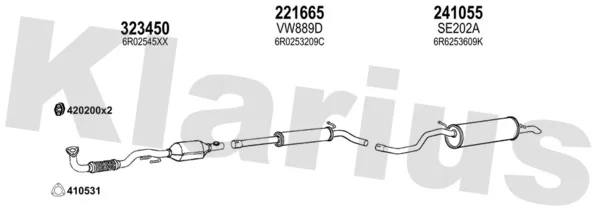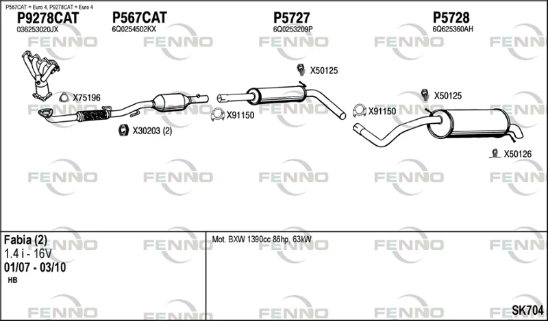 SKODA FABIA II (542) 1.4 - Výfukový systém - kompletní od 1/2007 do 12/2014, 1390 ccm, 63 kW, 86 hp, BXW, CGGB, Šikmá zadní část