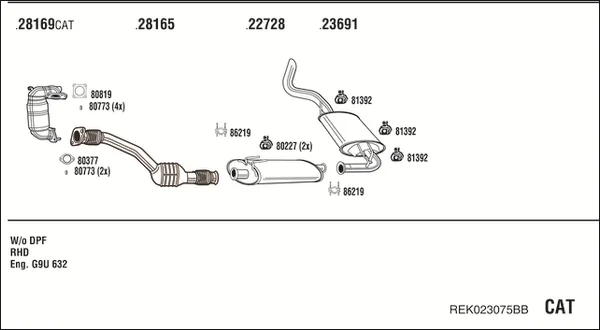 RENAULT MASTER II autobus (JD) 2.5 dCi (JD01, JD0Y, JD11, JD1W, JD1Y) - Výfukový systém - kompletní od 8/2006 do 1/2010, 2463 ccm, 107 kW, 146 hp, G9U 632, autobus