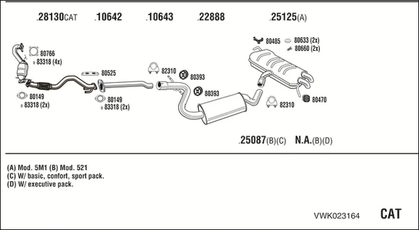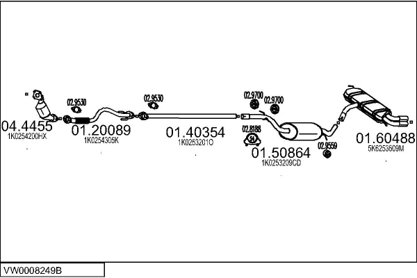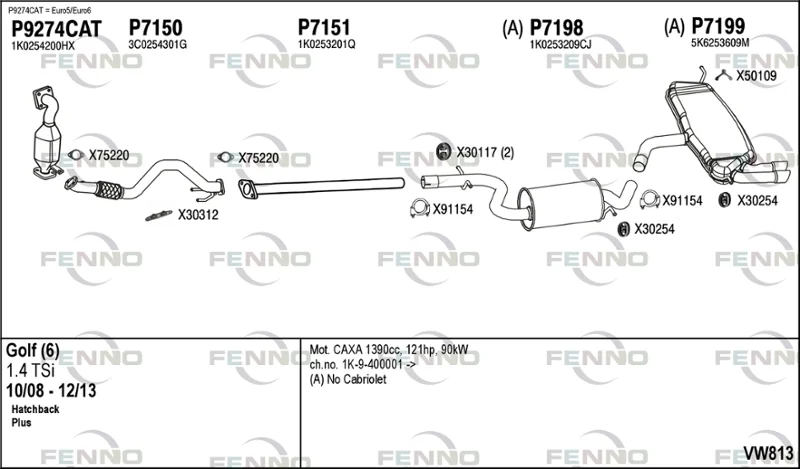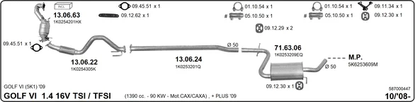 VW GOLF PLUS V (5M1, 521) 1.4 TSI - Výfukový systém - kompletní od 6/2007 do 12/2013, 1390 ccm, 90 kW, 122 hp, CAXA, Šikmá zadní část