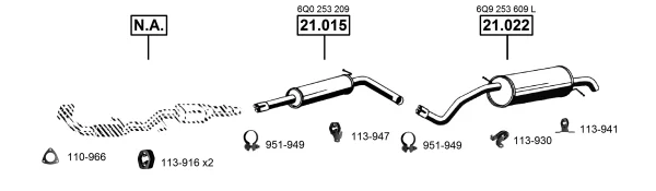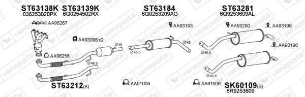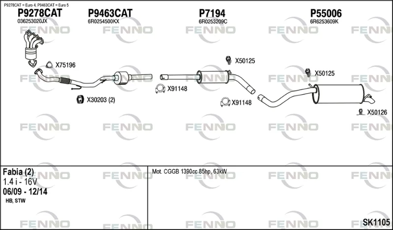 SKODA FABIA II Combi (545) 1.4 - Výfukový systém - kompletní od 10/2007 do 12/2014, 1390 ccm, 63 kW, 86 hp, BXW, CGGB, kombi
