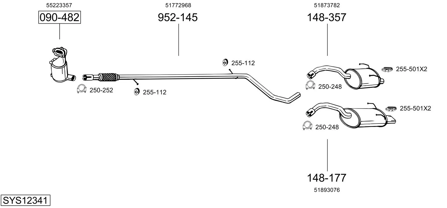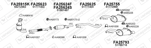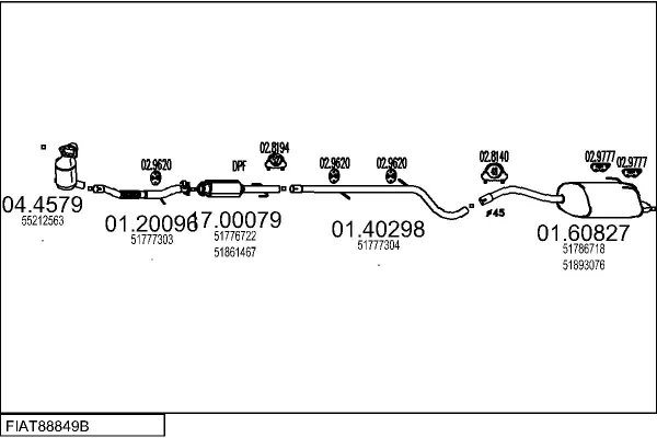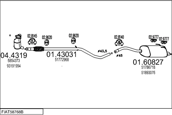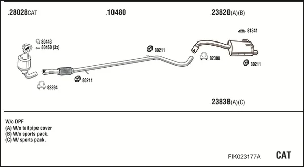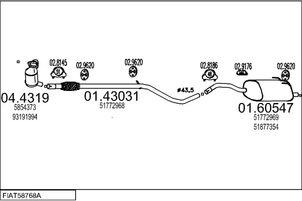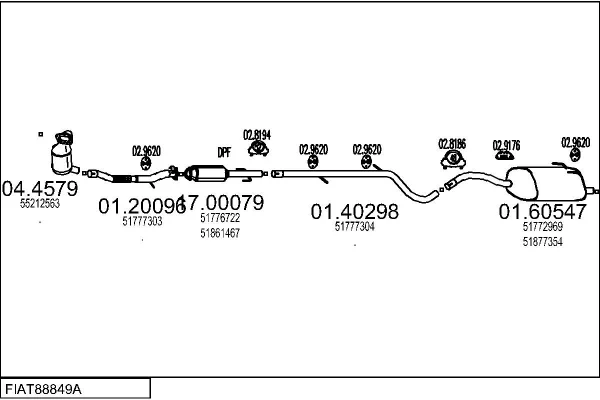 FIAT 500 (312_) 1.3 D Multijet (312AXB1A) - Výfukový systém - kompletní od 10/2007, 1248 ccm, 55 kW, 75 hp, 169 A1.000, Šikmá zadní část