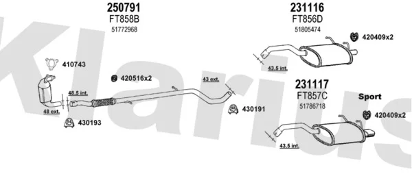 FIAT 500 (312_) 1.3 D Multijet (312AXB1A) - Výfukový systém - kompletní od 10/2007, 1248 ccm, 55 kW, 75 hp, 169 A1.000, Šikmá zadní část