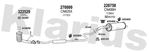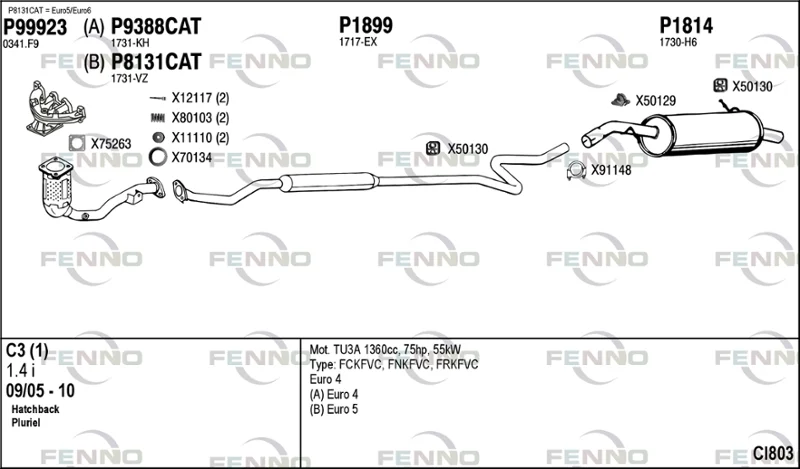 CITROËN C3 I (FC_, FN_) 1.4 i - Výfukový systém - kompletní od 2/2002 do 11/2010, 1360 ccm, 54 kW, 73 hp, KFV (TU3A), KFV (TU3JP), Šikmá zadní část