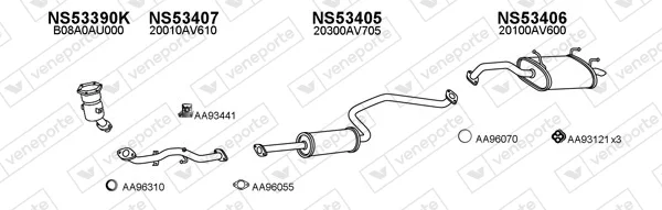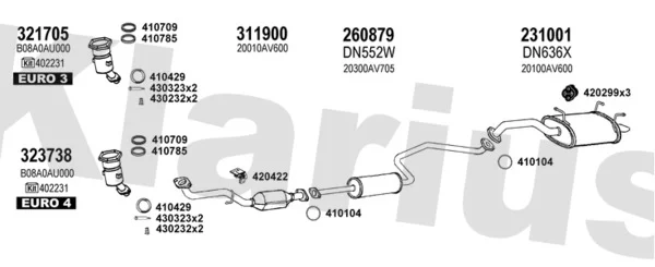 NISSAN PRIMERA Hatchback (P12) 1.6 - Výfukový systém - kompletní od 7/2002 do 4/2006, 1597 ccm, 80 kW, 109 hp, QG16DE, Šikmá zadní část