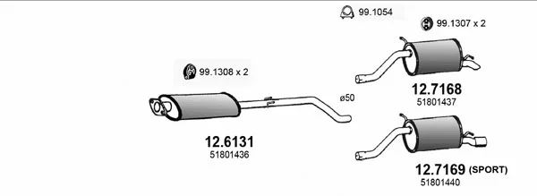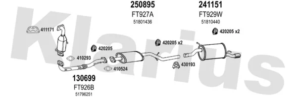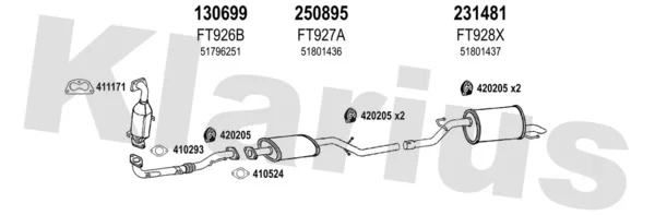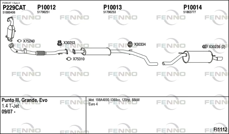 FIAT GRANDE PUNTO (199_) 1.4 T-Jet (199AXM1A, 199BXM1A, 199BXN1A) - Výfukový systém - kompletní od 9/2007, 1368 ccm, 88 kW, 120 hp, 198 A4.000, Šikmá zadní část