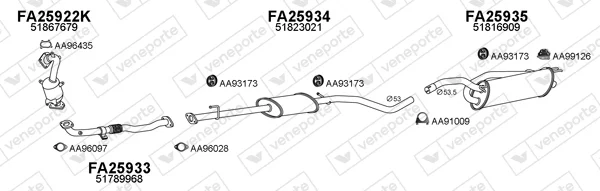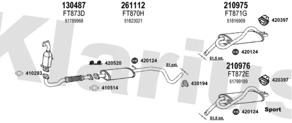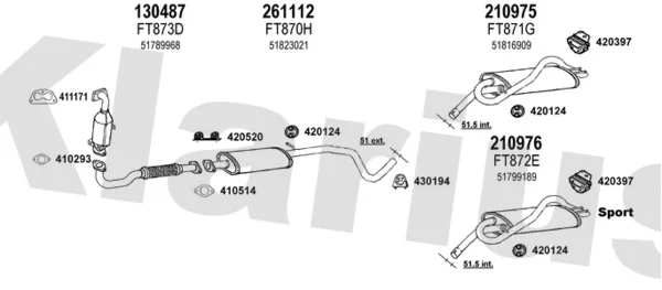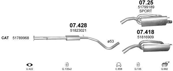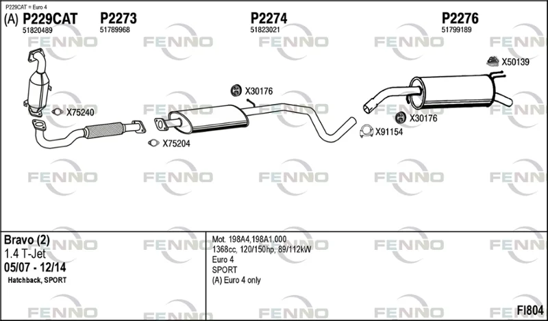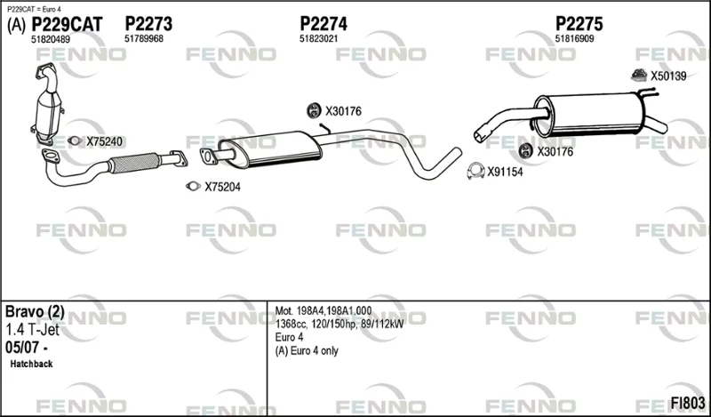 FIAT BRAVO II (198_) 1.4 T-Jet (198AXF1B) - Výfukový systém - kompletní od 9/2007 do 12/2014, 1368 ccm, 110 kW, 150 hp, 198 A1.000, Šikmá zadní část