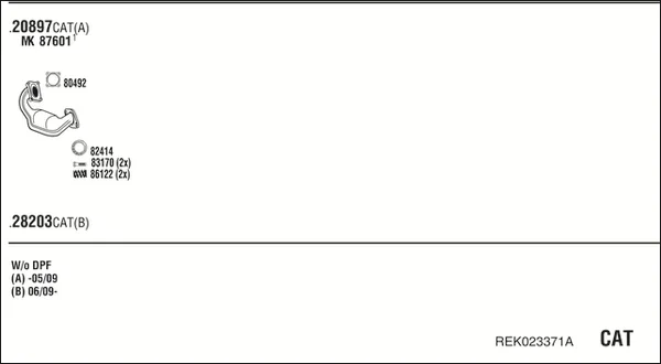 Druh katalyzátoru | pro vozidla bez filtru pevných částic |