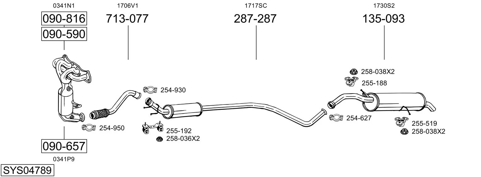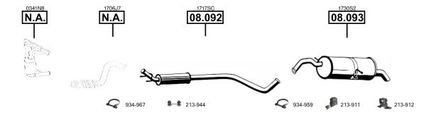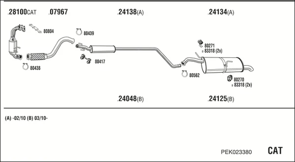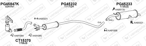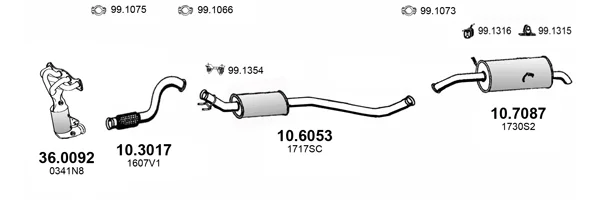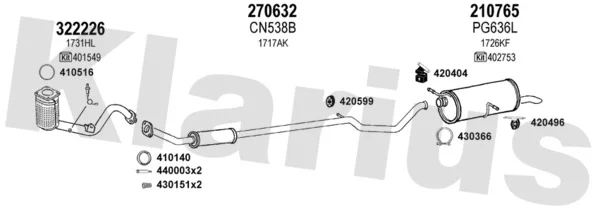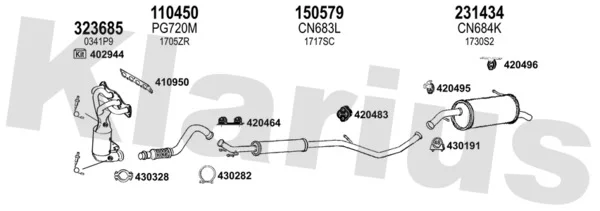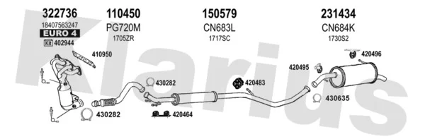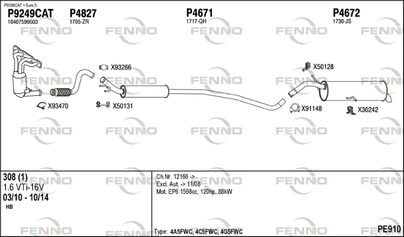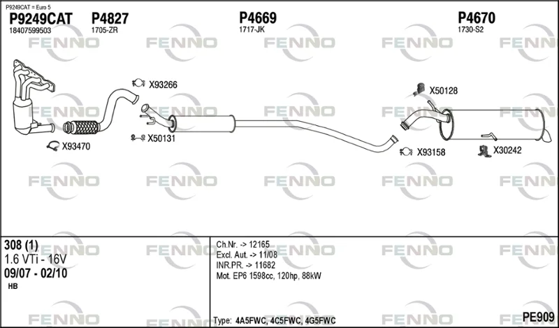 PEUGEOT 308 I (4A_, 4C_) 1.6 16V - Výfukový systém - kompletní od 9/2007 do 10/2014, 1598 ccm, 88 kW, 120 hp, 5FS (EP6C M), 5FS (EP6C), 5FW (EP6), Šikmá zadní část