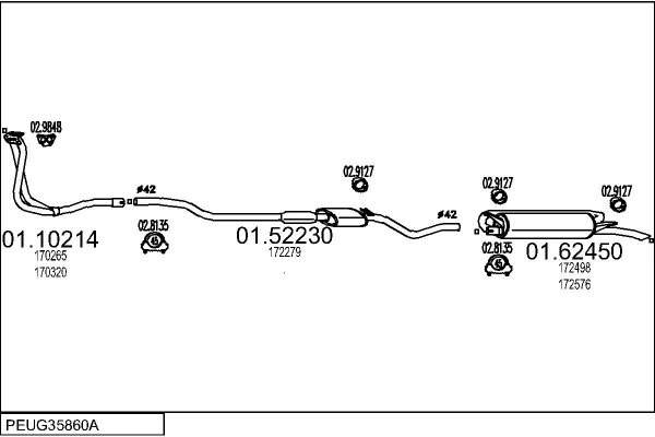 PEUGEOT 305 II (581M) 1.5 - Výfukový systém - kompletní od 10/1982 do 8/1985, 1472 ccm, 54 kW, 73 hp, 142 (XR5), limuzína