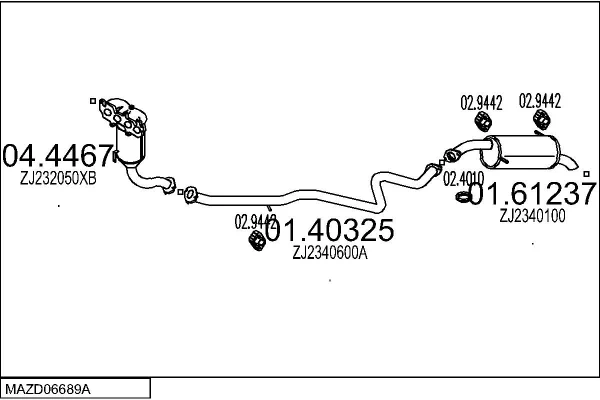 MAZDA 2 (DE_, DH_) 1.3 (DE3FS) - Výfukový systém - kompletní od 10/2007 do 6/2015, 1349 ccm, 63 kW, 86 hp, ZJ-VE, ZJ46, Šikmá zadní část